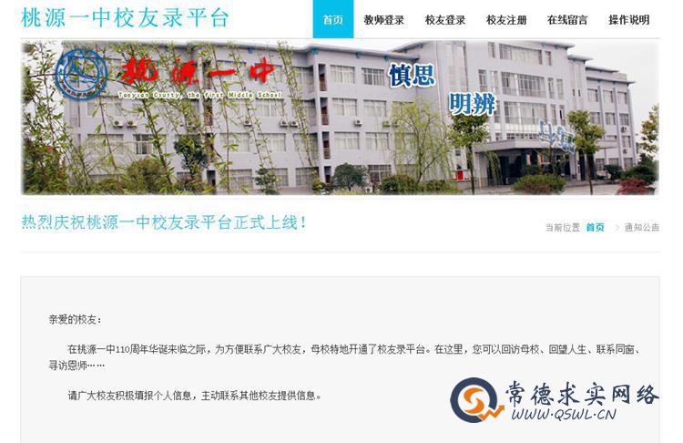 值此桃源一中110周年华诞来临之际,为广大校友回访母校、回望人生、联系同窗、寻访恩师……提供了方便,得到了各界好评!